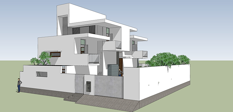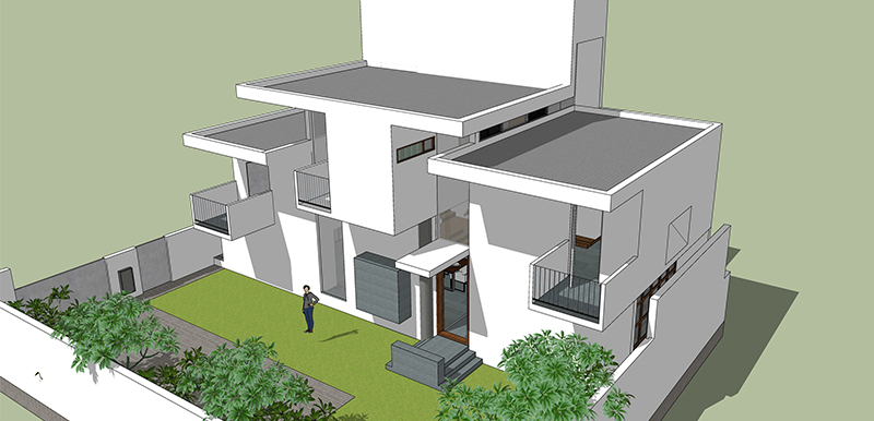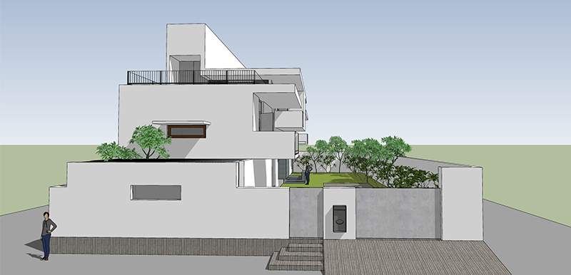 The house in hyderabad, where the humidity is very less is designed with evaporative cooling aspect to keep the humidity in balance and keeping the house cool.The house opens up in split levels keeping the privacy for the bedrooms and retains connection among the users.